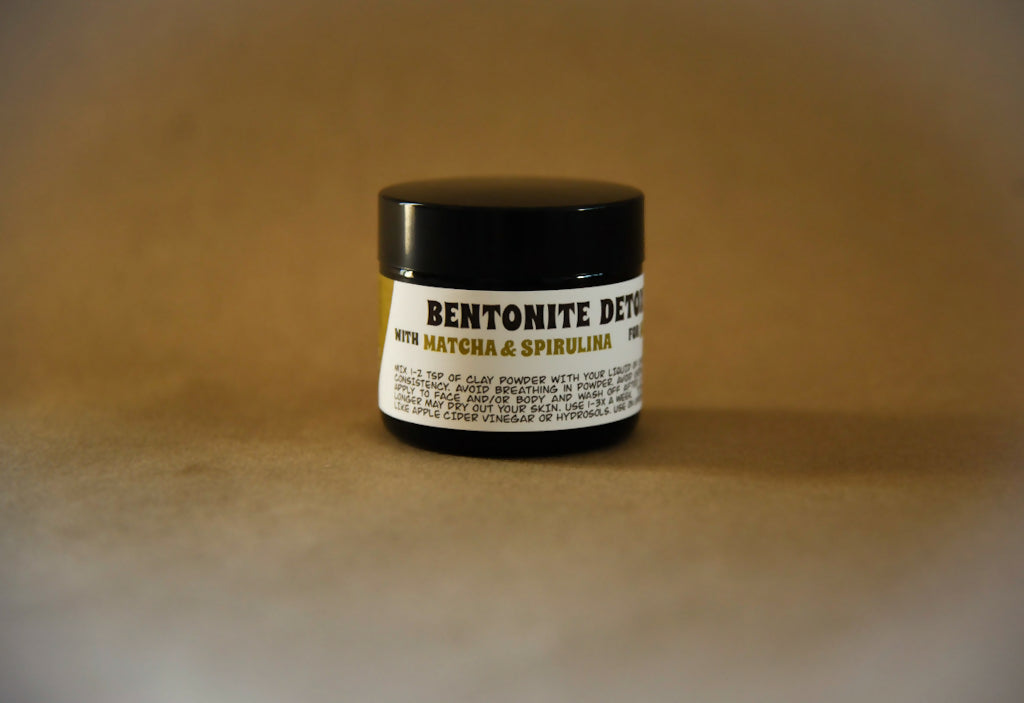 This bentonite clay detox mask features matcha and spirulina powder for their added cleansing and anti-oxidant support. This clay mask helps remove impurities from the skin and pores... goodbye excess oil and dead skin! As a pore cleanser, this mask is great for acne prone skin. Ground oats exfoliate the skin and help improve skin texture. Making the switch to natural deodorant? It helps to detox your armpits first and free your pores of built up toxins. A bentonite clay mask is a must in everyone’s skin care cabinet!