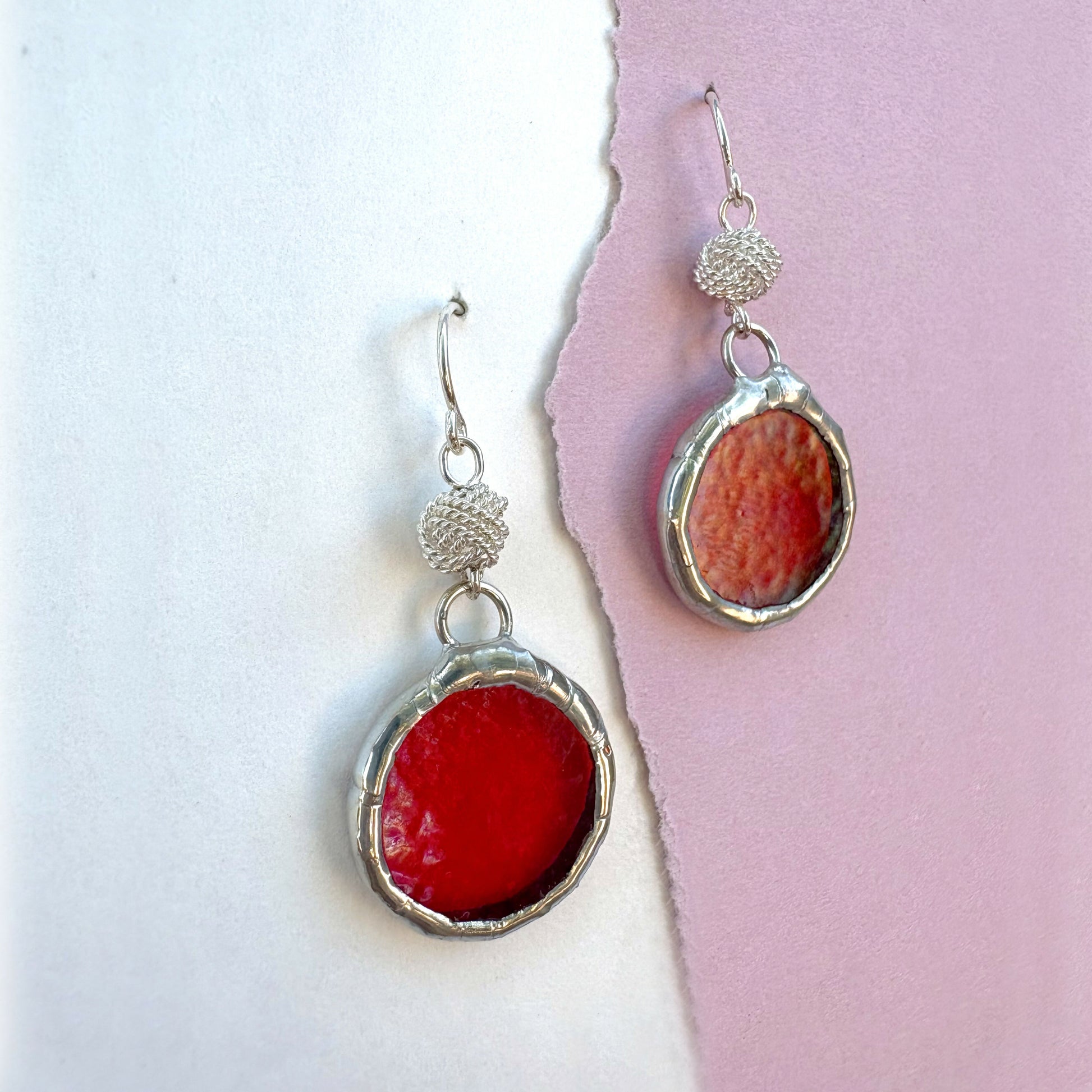 STAINED GLASS earrings made with glass and cute sterling silver twist wire love knots.