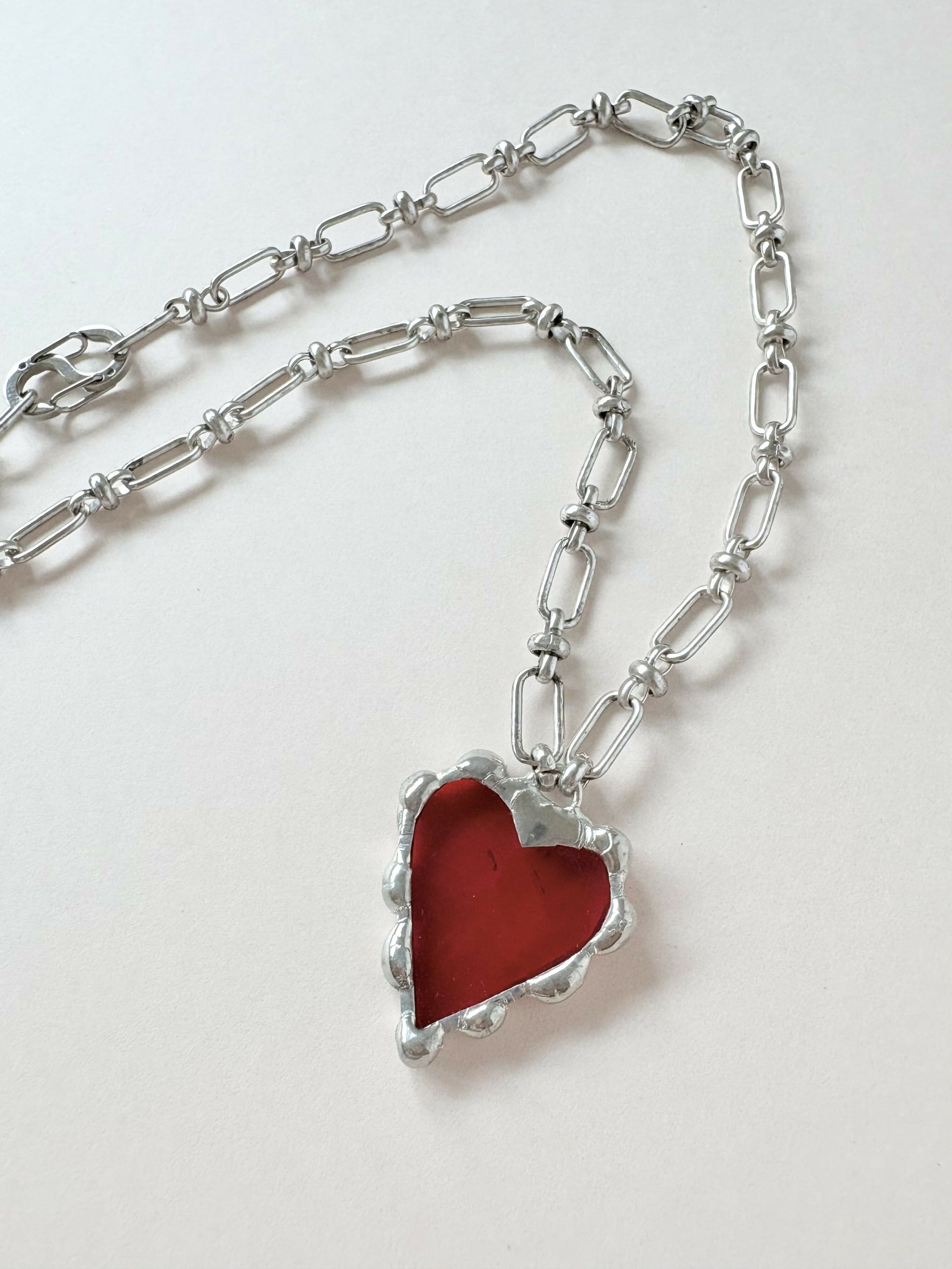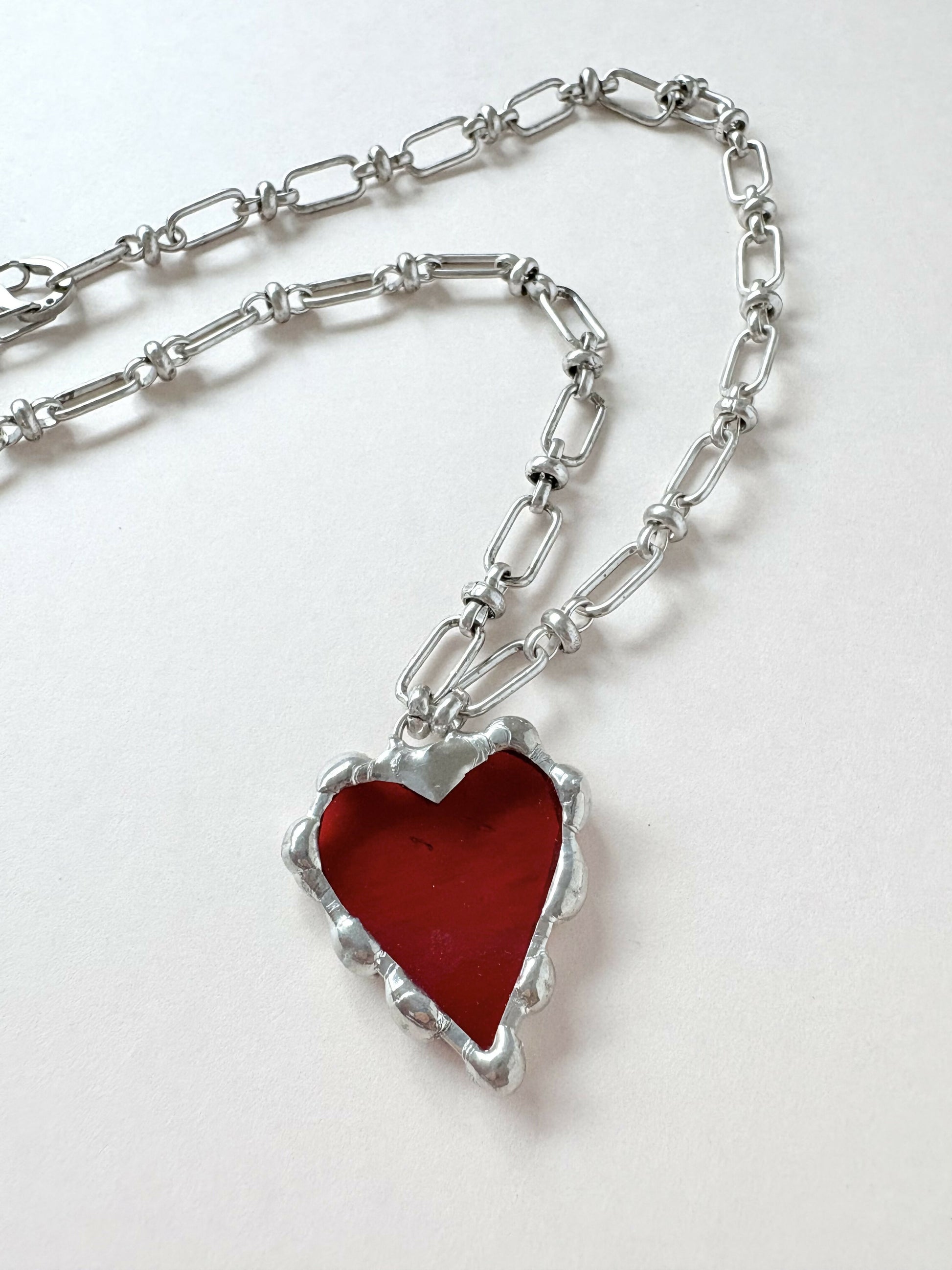 * All of my jewelry is design and handmade in the traditional Tiffany copper foil stained glass method with lead-free solder. Each piece of glass is traced, hand cut, edges smoothed out, foiled with copper tape, soldered, cleaned and finished with care. The glass used in each piece is unique to each piece and it will often have small imperfections that comes from the process of producing the glass. This may include small bubbles, small lines and minor waves in the glass.
