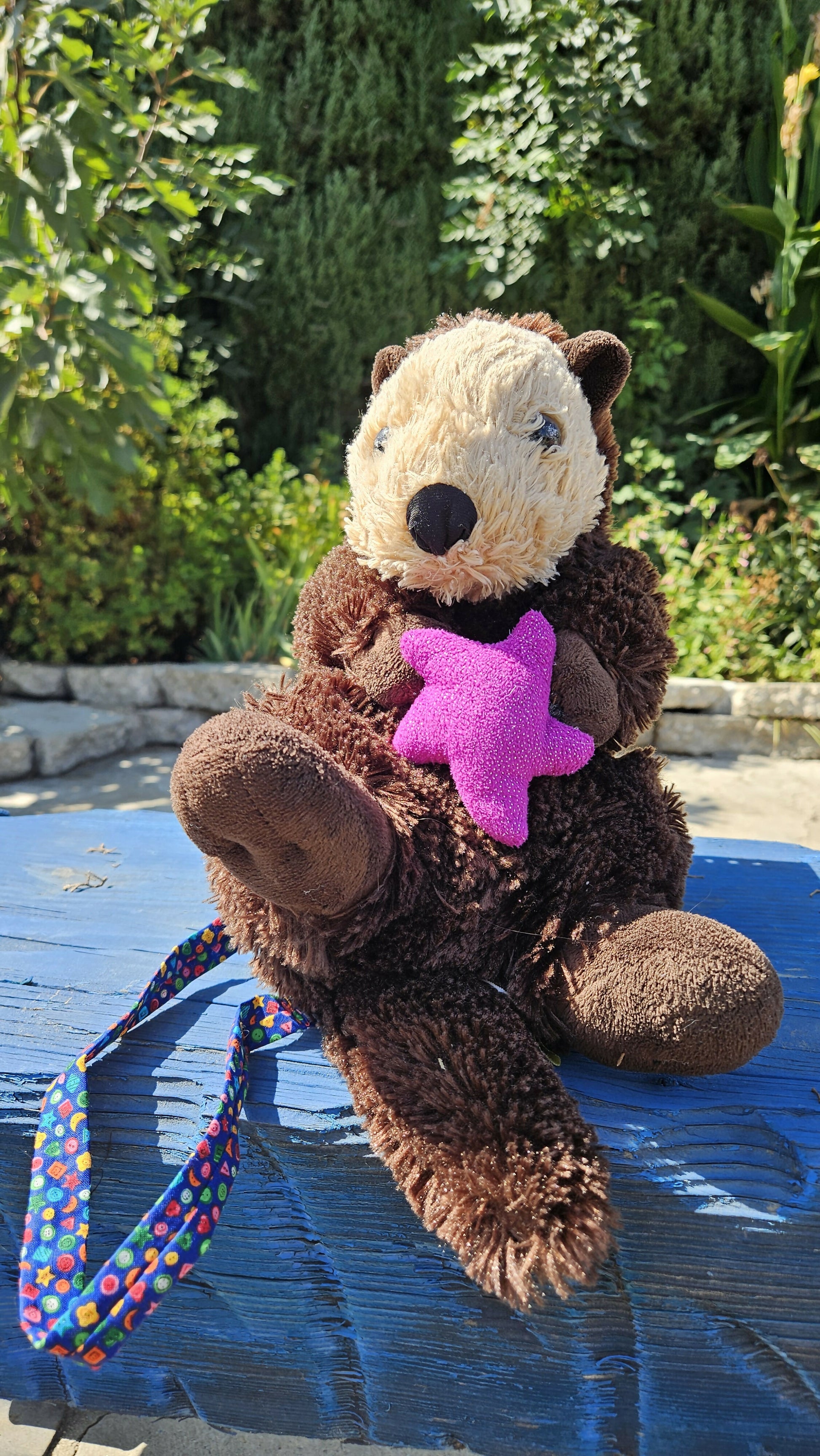 This otter plushie is now a bag! Otter sourced from my local thrift store, lining made from donated fabric scraps. It can hold the essentials, phone, keys, and wallet. Hardware, zipper, and lining sewn in by hand <3