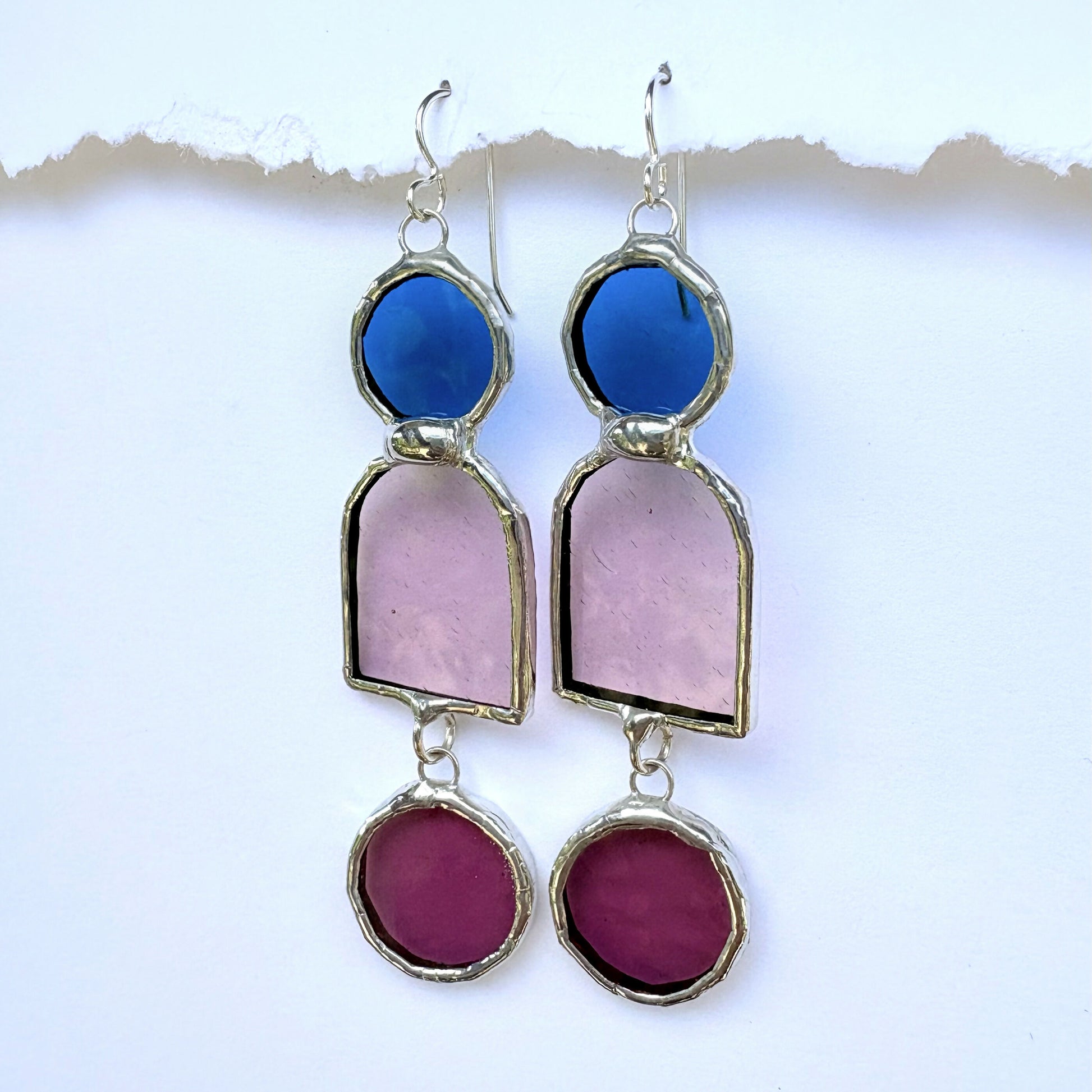 STAINED GLASS These earrings are playful with fun color harmony and geometric design made of three stacked shapes.
