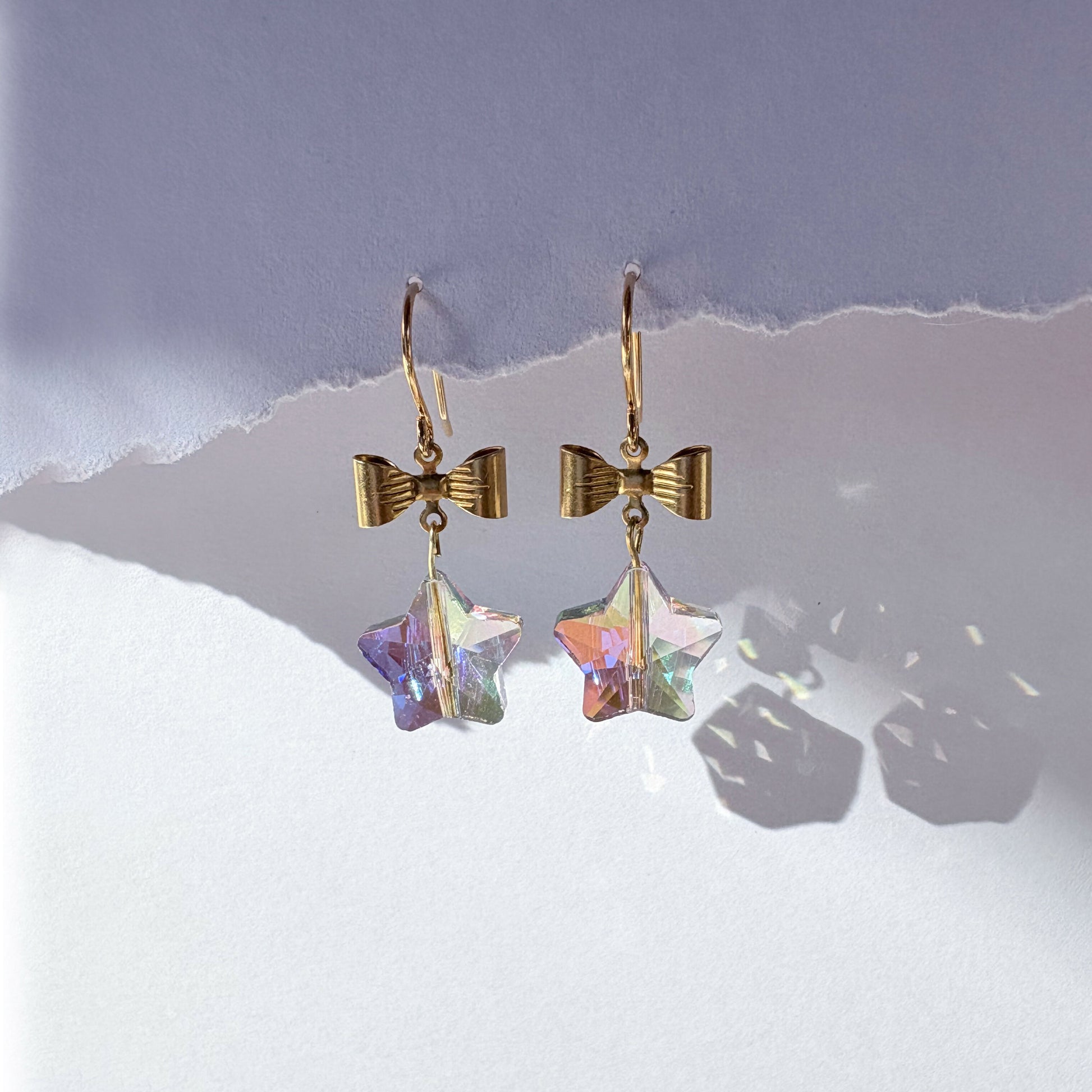 These cuties combine vintage brass bows with Swarovski star beads with a glow to catch the light and everyone’s attention.